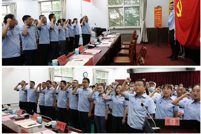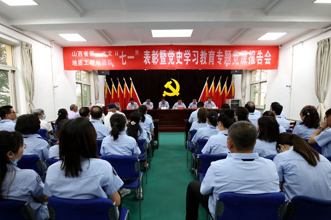 大会在庄严的国歌声中拉开序幕,党委书记郭红党宣读了《关于表彰优秀共产党员、优秀党务工作者、先进党支部的决定》,队领导为受表彰的先进集体和个人颁发了奖牌和荣誉证书,受表彰代表郤一臻作了表态发言。新党员面对党旗进行了宣誓,全体党员一起重温了入党誓词。纪委书记郝晓龙宣读了《关于印发<山西省地勘局“光荣在党50年”纪念章颁发工作方案>的通知》,队长任创业、党委书记郭红党向“光荣在党50年”老党员代表颁发了纪念章。
