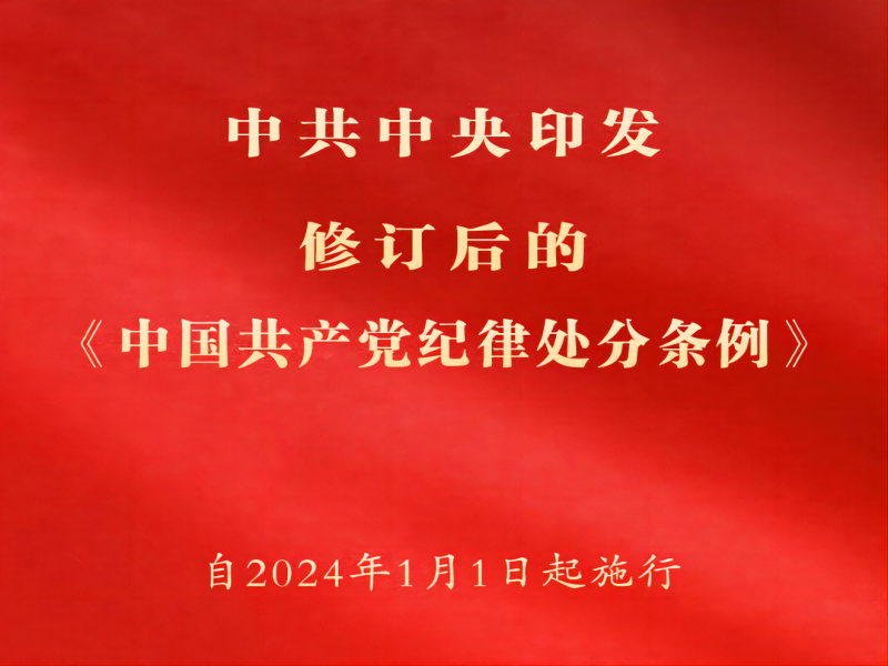 通知指出,党的二十大对全面加强党的纪律建设作出战略部署。党中央着眼解决大党独有难题、健全全面从严治党体系,对《条例》作了修订。《条例》全面贯彻习近平新时代中国特色社会主义思想和党的二十大精神,从党章这个总源头出发,坚持严的基调,坚持问题导向和目标导向相结合,与时俱进完善纪律规范,进一步严明政治纪律和政治规矩,带动各项纪律全面从严,释放越往后执纪越严的强烈信号,发挥纪律建设标本兼治作用,为以中国式现代化全面推进强国建设、民族复兴伟业提供坚强纪律保障。
