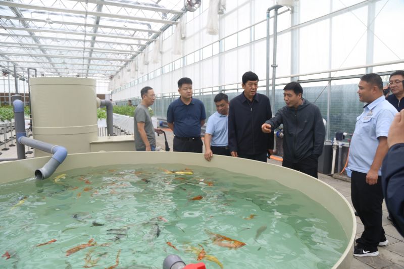 在科研示范基地,郑志刚一行实地考察了地热展示厅、1号和2号发电机组、地热试验井、换热站、温室大棚等,详细了解了地热发电技术、“采灌一体化”和无干扰地热供暖工艺、鱼菜共生系统等情况,就地热开发利用规模现状、发展前景、汾阳市地热开发设想等进行了深入交流,并对地勘队伍在地热资源开发利用方面做出的积极成效给予了高度评价,希望以此为契机,加强交流,共谋发展,在地热领域寻求更多合作空间。
