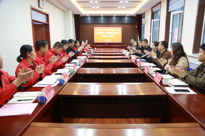 10月30日,宁夏地质工程集团有限公司党委副书记、总经理陈民,党委副书记、工会主席杨蕊蕊一行8人到球速体育app官网调研交流。公司党委副书记、副董事长、总经理施红政主持召开调研交流会,相关领导班子成员及部门负责人参加调研。