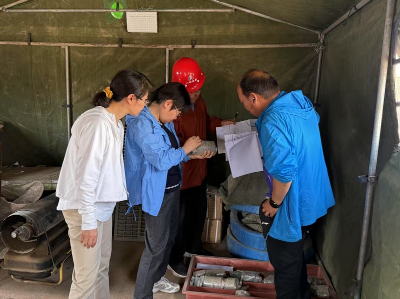 验收工作中,监理组首先听取项目负责人刘媛对项目进展情况的汇报,之后从工作量核查、技术质量保证、安全环保措施、资料整理归档、质量管理体系运行等五个方面对项目勘查及地热资源调查进行评估,其中着重对两处钻孔进行核查,监理组实地查看岩芯并查阅两处钻孔岩芯编录、物探测井等相关资料。经过现场核查,监理组专家认定工程资料较为齐全、完整、真实,能够准确反映工程建设过程,较符合国家及地方相关标准和规范要求,一致同意通过本次验收,同时对检查中发现的问题和下一步工作提出了指导意见。