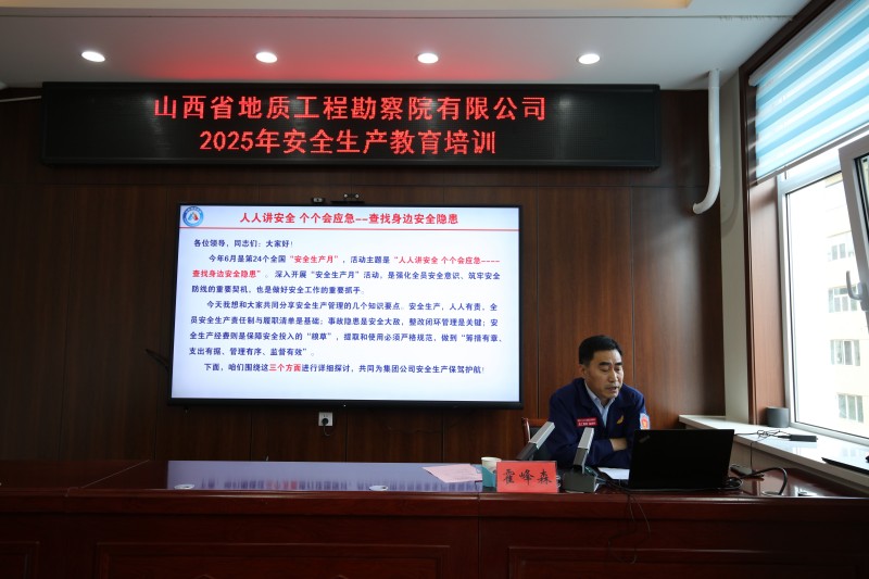 启动仪式上,施红政传达领学了《山西地质集团有限公司2025年“安全生产月”活动方案》,党委委员、副总经理安道智宣读了公司“安全生产月”活动方案,并部署重点工作。党委书记、董事长赵政在会议上强调,一要提高政治站位,树牢安全发展理念;二要加强安全月宣传,营造安全生产氛围;三要强化使命担当,全力开展隐患排查整治;四要深化制度建设,持续完善责任体系。他要求各单位各部门保持高度警觉、高度负责态度筑牢安全生产防线,聚焦隐患排查整治,严格落实整改责任,切实防范事故,为公司高质量发展提供安全保障。随着各项工作安排的明确部署,本次“安全生产月”仪式正式启动,吹响了地勘院有限公司2025年安全生产月活动的号角,为后续系列安全宣传、隐患排查等工作的有序开展奠定坚实基础。