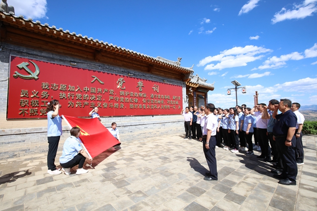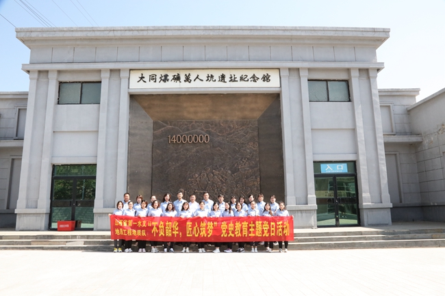 在活动期间,双方党员干部还参观考察了球速体育app官网开发利用科研示范基地,在李二口村爱国主义教育基地示范点进行了党史教育,双方党员一同面对党旗举行了庄严的重温入党誓词宣誓仪式;离开天镇后,根据主题党日活动安排,我队党员干部赶赴大同,参观了万人坑遗址纪念馆和红色记忆馆,通过参观引起了全体党员干部的共鸣,切实起到了以史为镜、以史明志、知史爱国、知史爱党的作用。